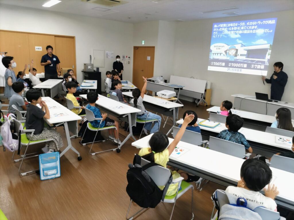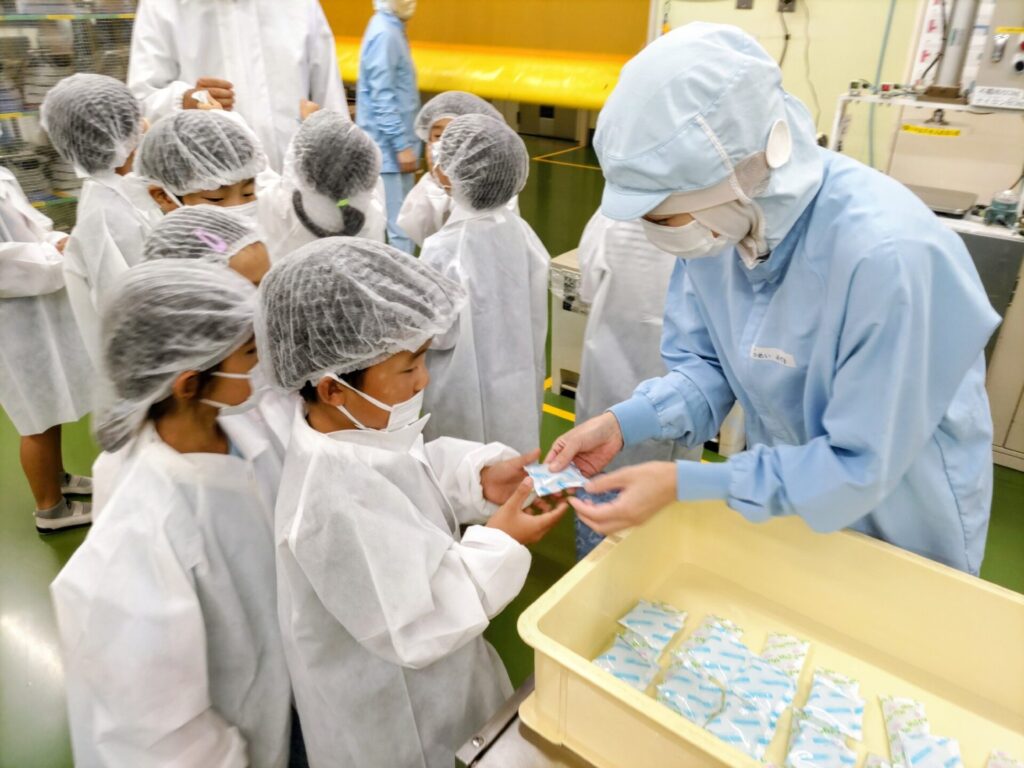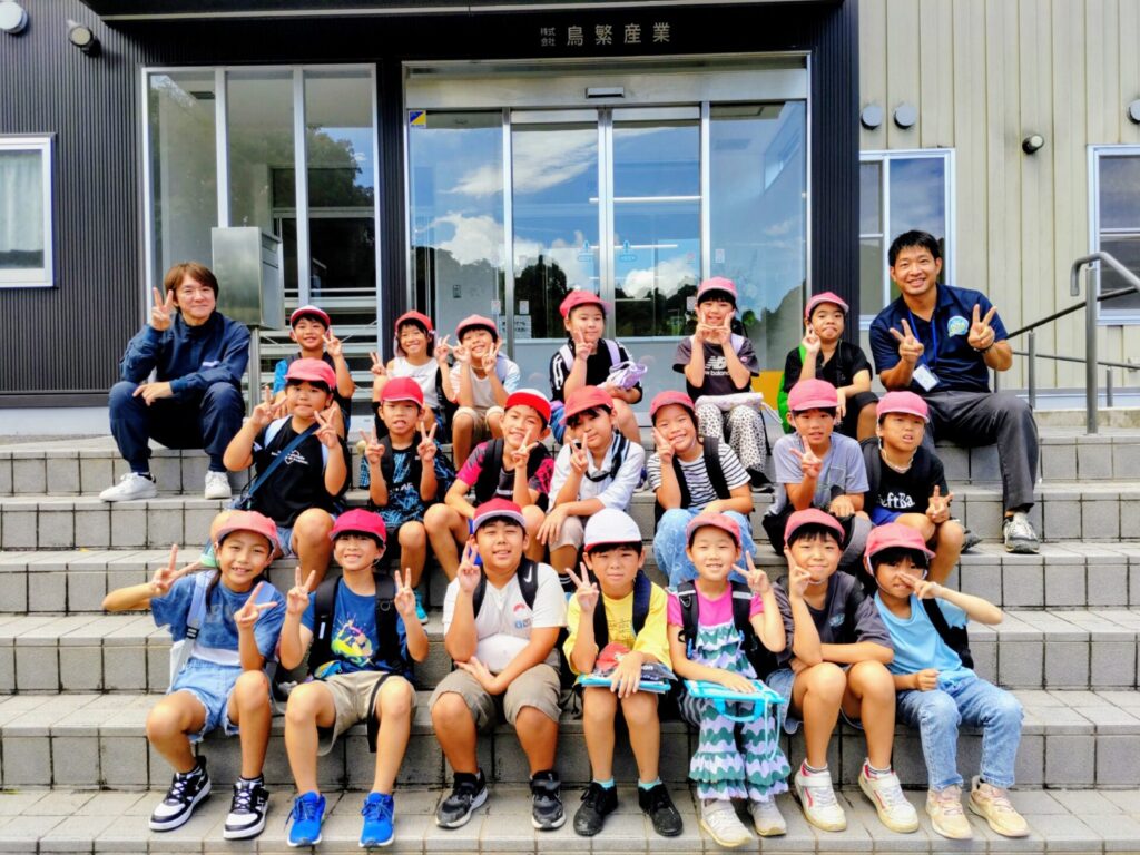 地域の子供たちと交流の第二弾として、12日に青江小学校3年生が社会見学に来社してくれました。身近にある地域の産業(暮らし)を知る機会として毎年来てもらっています。今年は社員のお孫さんが訪ねてくれて記念撮影もありました。