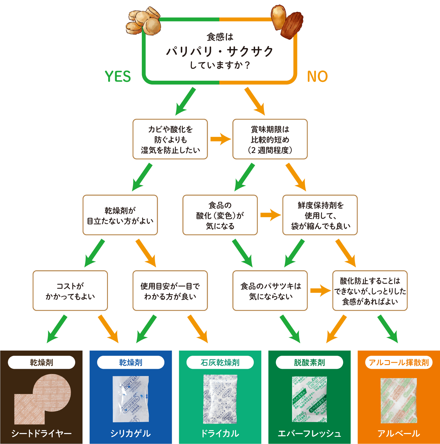 ※鮮度保持剤の使用を検討される場合は必ず実装試験を行い、希望の日持ちや食品の乾燥状態等を確認した上で鮮度保持剤を選択してください。